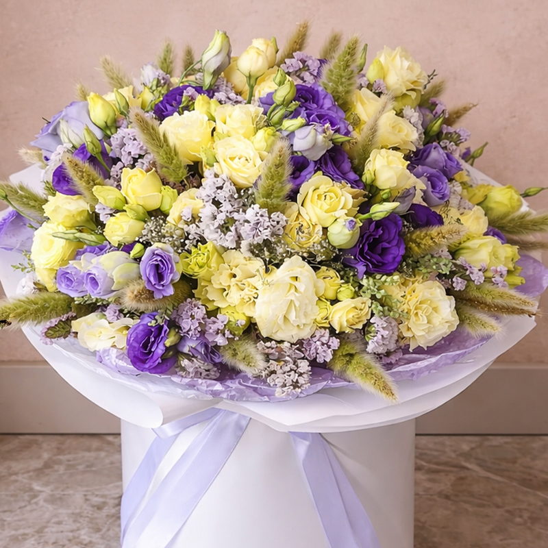 Розы, лимониум, эустома (лизиантус), сухоцветы.