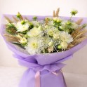 Кустовые розы, хризантема, сухоцветы.