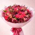 Кустовые розы, кустовая гвоздика, альстромерия, сухоцветы.