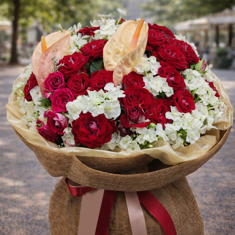Кустовые розы, антуриум, флокс.